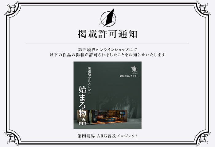数々の話題作を世に送り出し、ARG(代替現実ゲーム)シーンを牽引する「第四境界」様。 その第四境界様が主導する「ARG普及プロジェクト」において、MARGINEの作品が審査を経て【許可】され、「GUEST ARG」として掲載されることが決定いたしました。